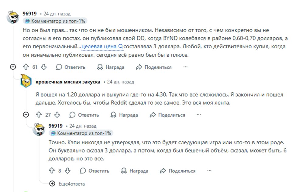 Попытки менеджмента спасти компанию от краха привели к резкому обвалу акций, чем и воспользовался инвестор. В сентябре 2025 года он скупил $BYND на ценовом дне по $0,67 и начал пампить актив на популярных американских форумах и в социальных сетях. Многочисленные начинающие трейдеры поверили эксперту и также стали активно скупать «неликвид».