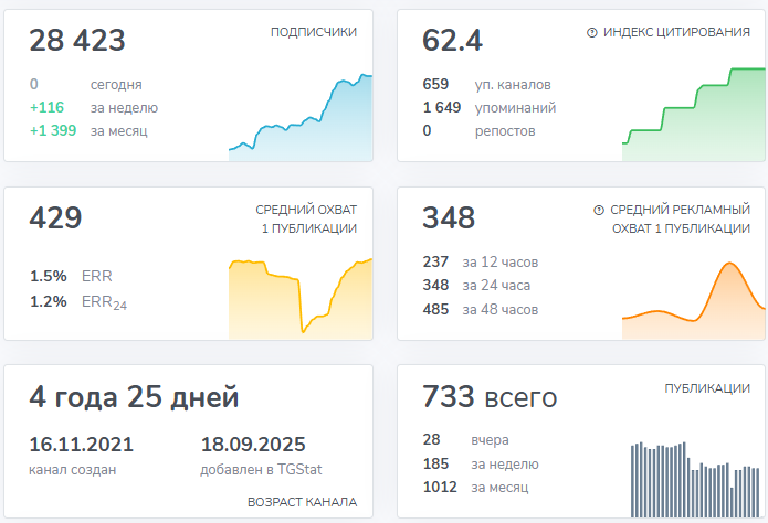 Телеграм-канал собрал 28 тысяч подписчиков. Посты читают только 429 человек. Разница в 65 раз говорит о накрутке аудитории. Реальных заинтересованных людей крайне мало.