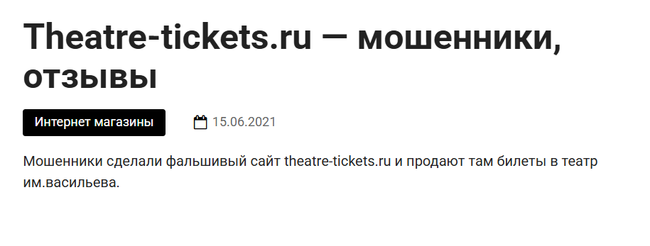 О телеграм-канале «Доступные билеты» в сети ни одного отклика не представлено. Мы нашли только отзыв на сайт с аналогичным названием theatre tickets ru. Пользователи пишут, что платформа принадлежит мошенникам. Неизвестно, есть ли какая-то взаимосвязь между этими двумя ресурсами. В любом случае, репутация у проекта в сети фактически отсутствует.