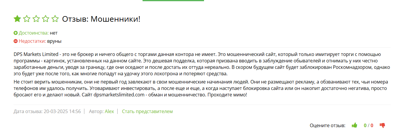 Настоящие отзывы о брокере DPS Markets Limited