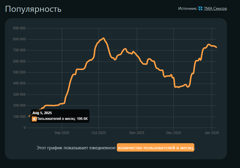 Ботом @DragoAppBot пользуется 724 000 человек ежемесячно. Неизвестно, когда именно приложение было запущено, но первые упоминания о нем появились в августе 2025 года.
