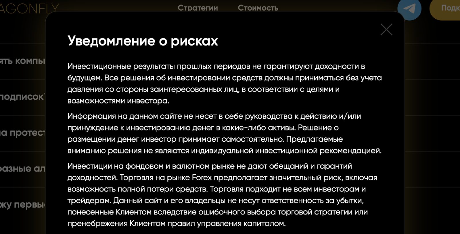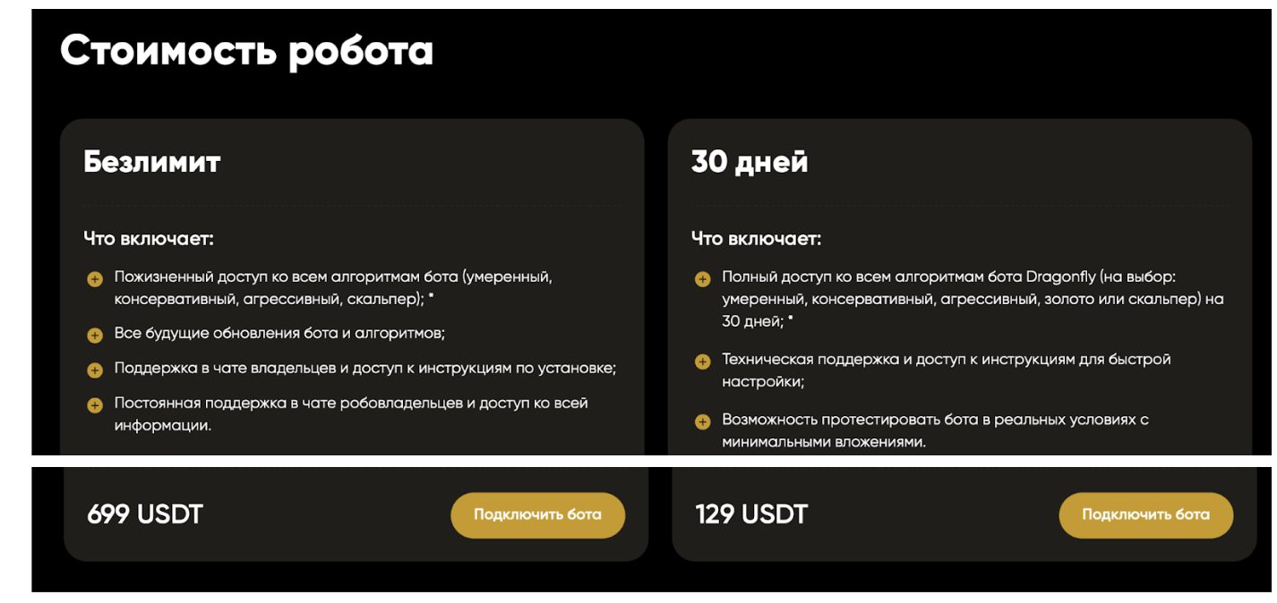 С платежами, условиями пополнения счета и вывода средств у проекта «Драгонфлай бот» все туманно. Деньги принимают в криптовалюте или через какие‑то сторонние платежные системы — и никаких четких гарантий, что все пройдет гладко. При этом нигде не сказано, что у проекта есть лицензия на финансовую деятельность или договоренности с официальными брокерами, которым можно доверять.