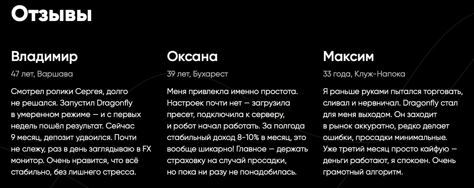 «Драгонфлай робот» — не волшебная машина для заработка, а обычный торговый робот для автоматической торговли на «Форекс». Мы выявили веские причины воздержаться от использования бота: он не является лицензированным инструментом для торговли и не дает пользователю даже минимальных гарантий безопасности. Также нас смутило отсутствие подтвержденных отзывов с описанием пользовательского опыта.