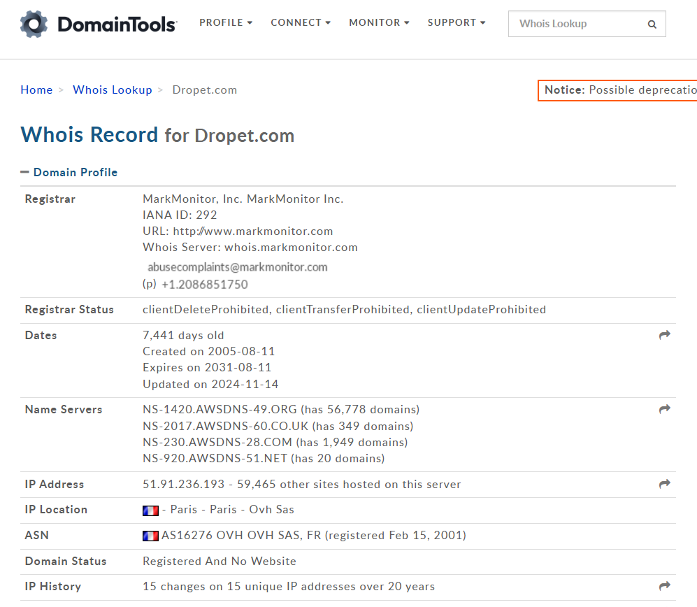 Домен зарегистрирован 11 августа 2005 г., что совпадает с заявленным годом основания. Домен продлен до 2031 г., использует инфраструктуру AWS и хостинг OVH во Франции, а владельцем домена в Whois указан Marex Financial Limited из Великобритании.
