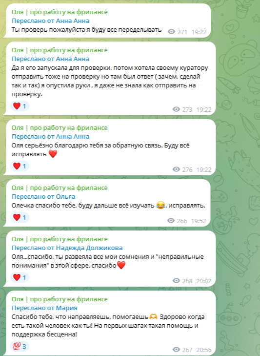Деятельность телеграм-канала «Ольга Дубровина Фриланс»