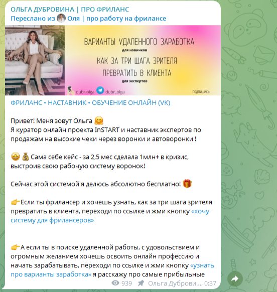 Ольга Дубровина Фриланс скам-проект в тг 💥 Мошенничество или честный телеграмм канал Dubrovina Olga?
