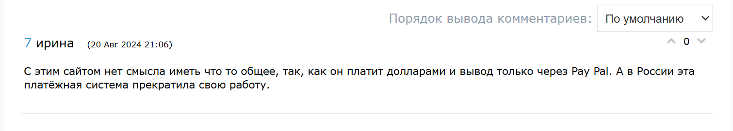 Отзывы о данном проекте в сети встречаются разные. В последнее время многие россияне жаловались, что сейчас нет смысла работать в этом опроснике, так как оплата в долларах и вывод через систему, которая больше не функционирует в России.
