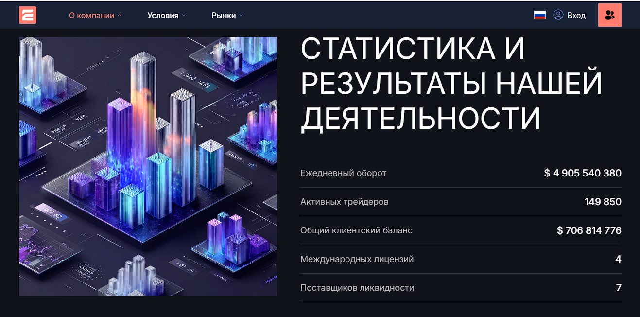 Эта компания позиционирует себя крупным международным брокером, но это легко опровергнуть. Первое, что настораживает, — заявленный ежедневный оборот: он выглядит откровенно завышенным. 4,9 млрд долларов – уровень серьезных институциональных игроков, а не розничных брокеров, не говоря уже о том, что подтверждения оборотов отсутствуют.