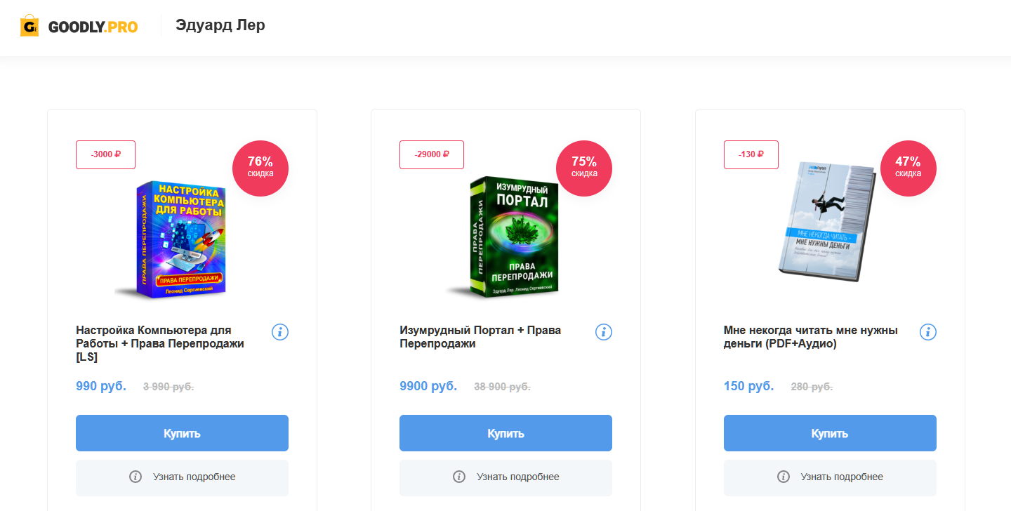 Эдуард Лер продает доступ к пассивному инвестированию недорого. Система дохода для новичков стоит всего 990 рублей. Клиенты Эдуарда, которые хотят получать крупную прибыль, могут купить «Изумрудный Портал» к богатству за 10 000 рублей.