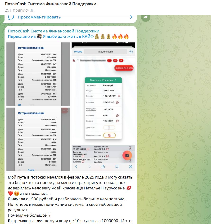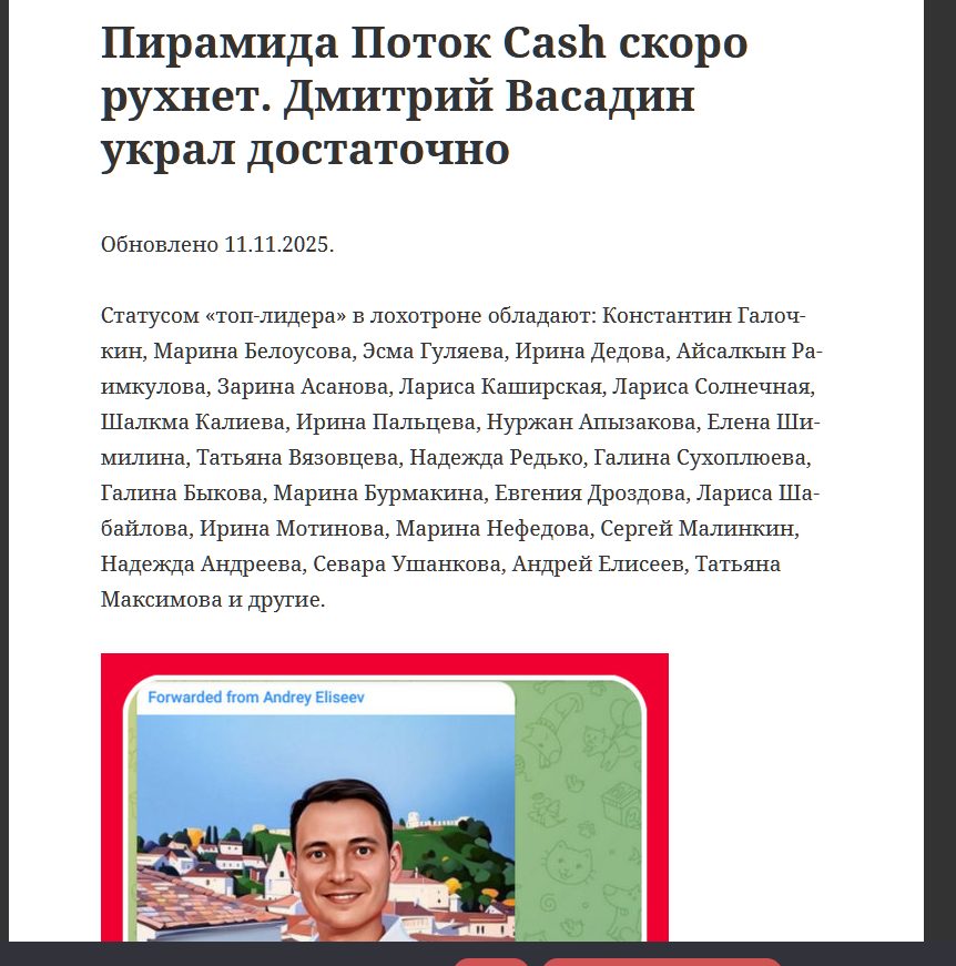 Эдуард приглашает пользователей принять участие в финансовой пирамиде, фонде взаимопомощи «Поток Cash». Это инвестиционная финансовая пирамида, созданная для обмана доверчивых пользователей.