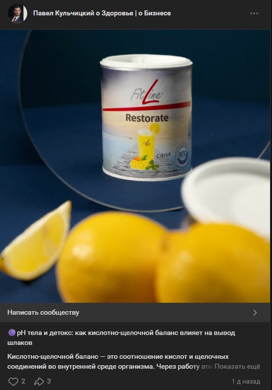Изучив сообщество, мы узнали, что через него продвигают сетевой бизнес по продаже БАДов, а его владелец является одним из партнеров такого предприятия.