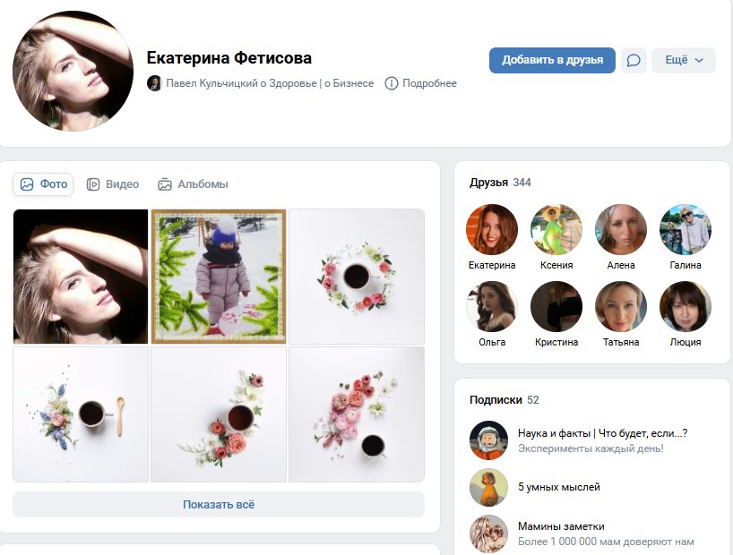 В описании сообщества можно найти ссылку на личную страницу Екатерины Фетисовой, но про инвестиции там практически нет информации. У этого пользователя всего 344 друга, нет публикаций на тему бизнеса или заработка на каких-либо проектах в личной ленте.