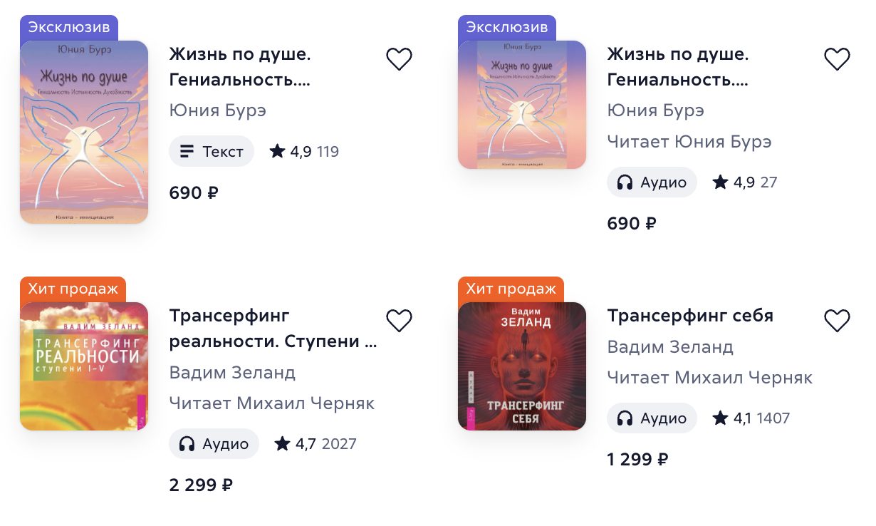 При нажатии на ссылку происходит переход на сайт «Литрес» в раздел «Практической эзотерики». Выясняется что Елена Демидова не является автором этих медитаций. Их нужно покупать отдельно по цене от 690 руб. и более.