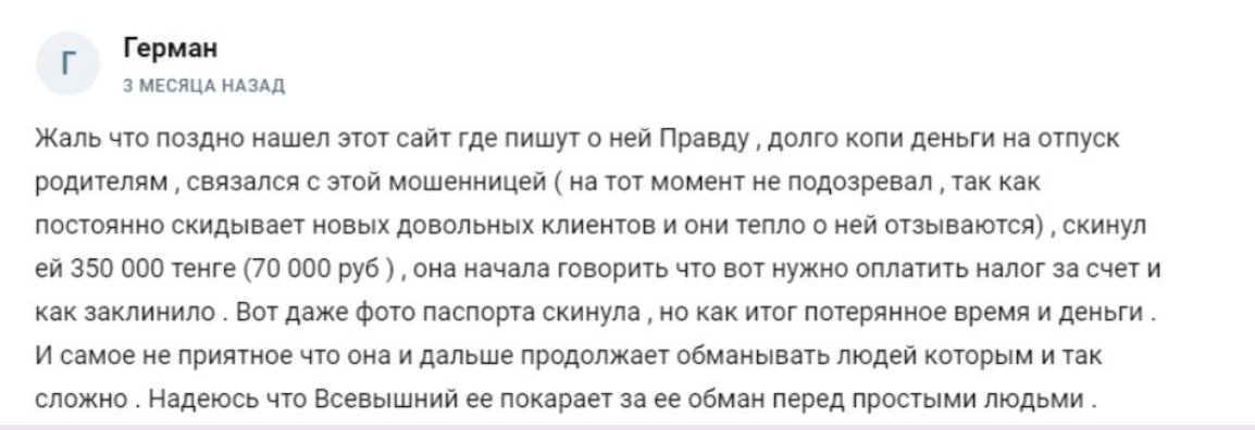 Очевидно, что негативного фидбека об Алёне Демидовой хоть отбавляй. Люди прямо пишут, что она брала у них деньги и крала их, попутно вымогая дополнительные платежи в виде комиссий, страховок и платных верификаций.