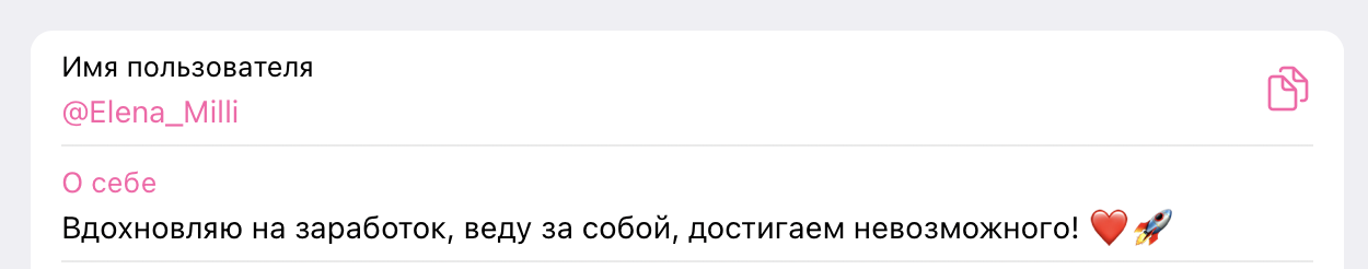 Все это подается в типичной манере «телеграмных» трейдеров: в постах тонны эмодзи с сердечками и ракетами, мотивационные тексты и фразы о «важности веры в себя». Впрочем, верить нужно не только в себя, но и на слово самой Елене, ведь сотрудничество с ней никак не оформляется. Суммы предлагается переводить прямо на банковскую карту без какой-либо дополнительной фиксации и гарантий.