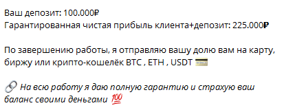 Елена Шевцова называет себя экспертом криптовалют и внушает, что работает на бирже. По заявлениям этой сказочницы, она является сотрудником торговой платформы Bybit, но в тоже время предлагает «грабить» эту площадку, обогащаясь с помощью «стопроцентных» сигналов.