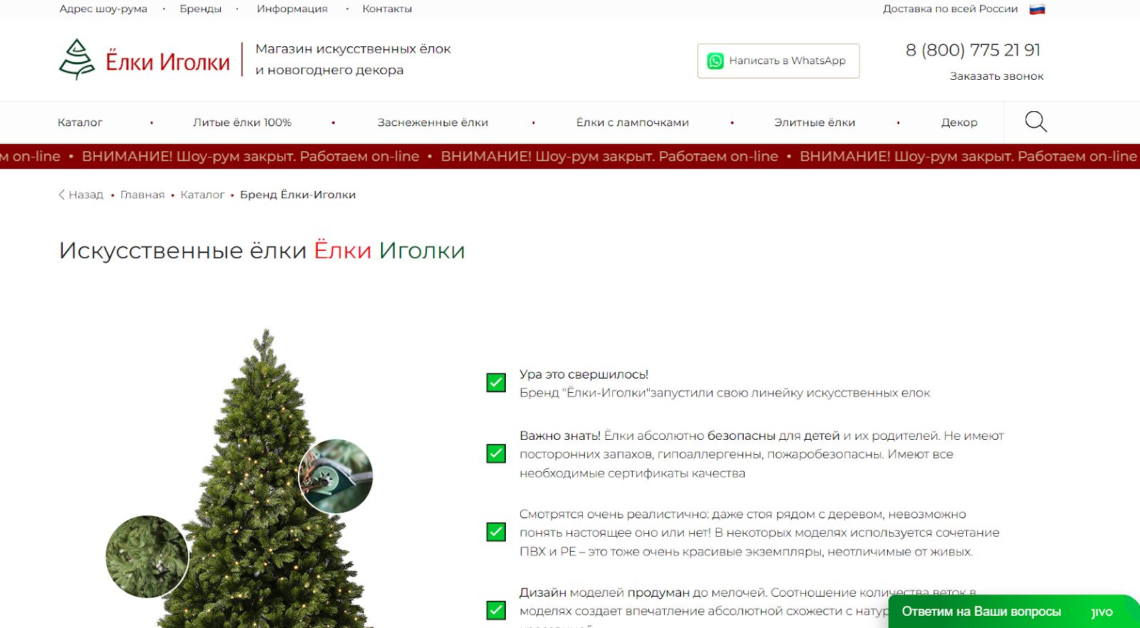 При этом канал “Елки Иголки” телеграм, который рекламируется, не связан с сайтом, но визуально и по названию пытается ассоциироваться с существующим брендом.