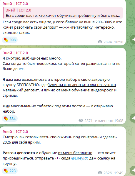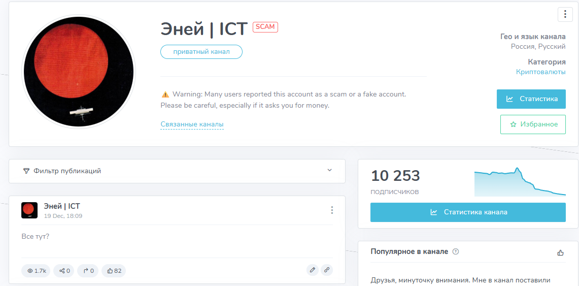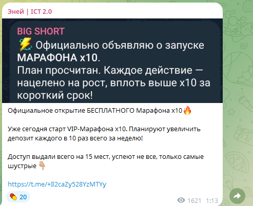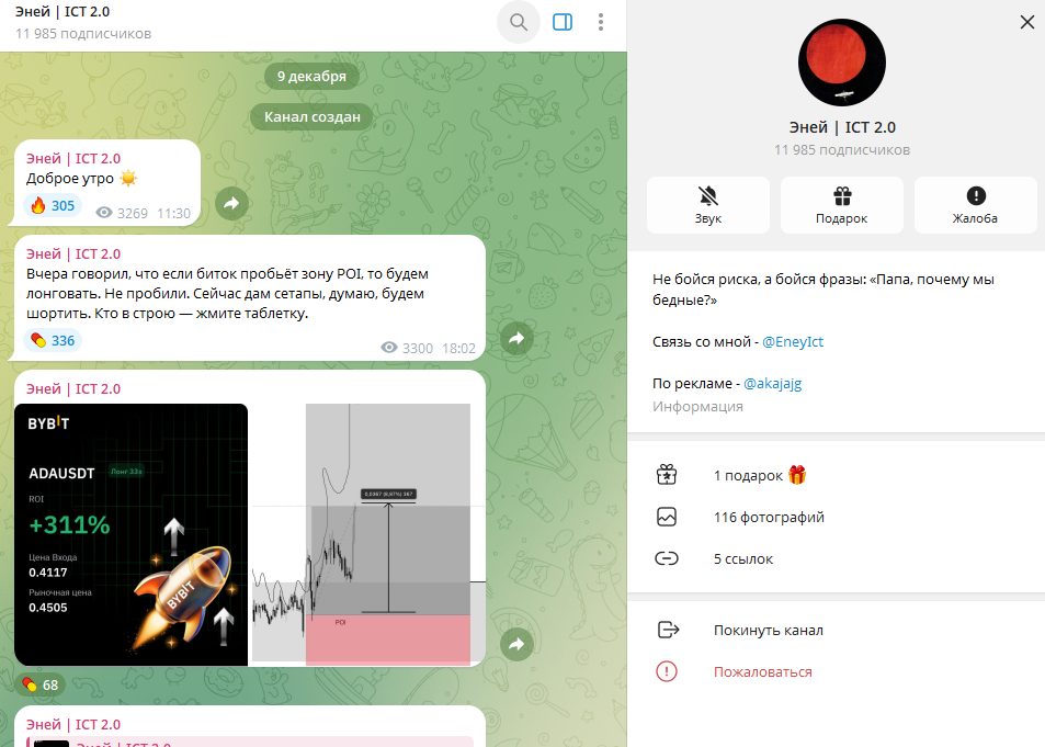 Эней ICT 2 0 – сообщество в Телеграм, созданное анонимным трейдером, известным под ником Эней. Автор предлагает пользователям сигналы, аналитику, но его опыт при этом никак не подтверждается. Мы провели проверку проекта с целью узнать, насколько безопасной может быть работа с ним.