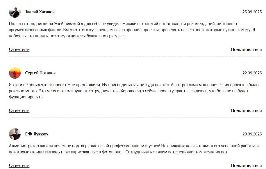 При написании обзора у анонимного автора есть по меньшей мере 3 аккаунта клона – ENEOUS1, Enej01 и EneyIct. Это также может быть показателем высокой степени риска для клиентов. Нередко подобные копирки создаются на случай подстраховки.