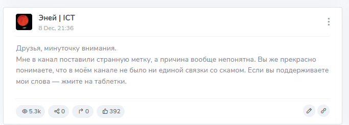 Администратор, разумеется, начал рассказывать о том, что якобы к выдаче метки не имеет отношения и не знает, каким образом она появилась. Однако выглядят такие рассказы не слишком-то убедительно. С большой долей вероятности метку выдали за доверительное управление. Ситуации, когда сообщества получают метку незаслуженно, являются скорее исключением, нежели правилом.