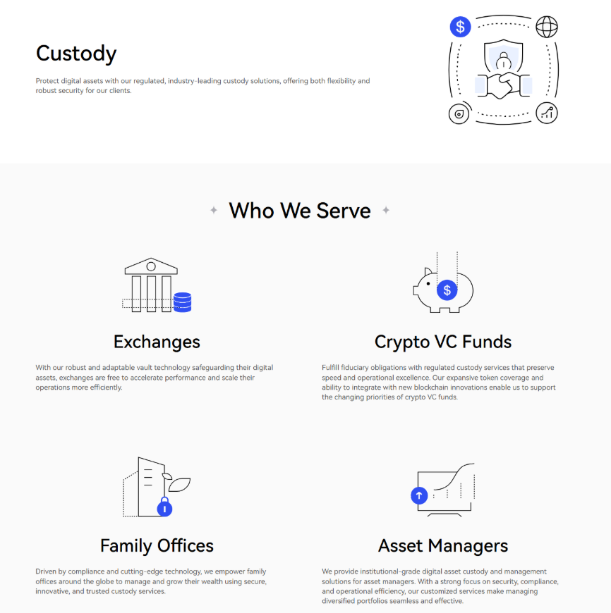 - Крипто венчурные фонды. Площадка обеспечивает им регулируемое хранение активов для сохранение скорости и эффективности работы.