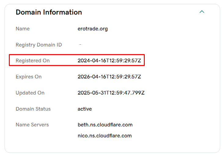 Первое, что бросается в глаза — это долгая история работы компании. Основатели утверждают, что она работает с 2006 года, однако проверка домена с помощью WHOIS показала, что он был зарегистрирован в 2024.