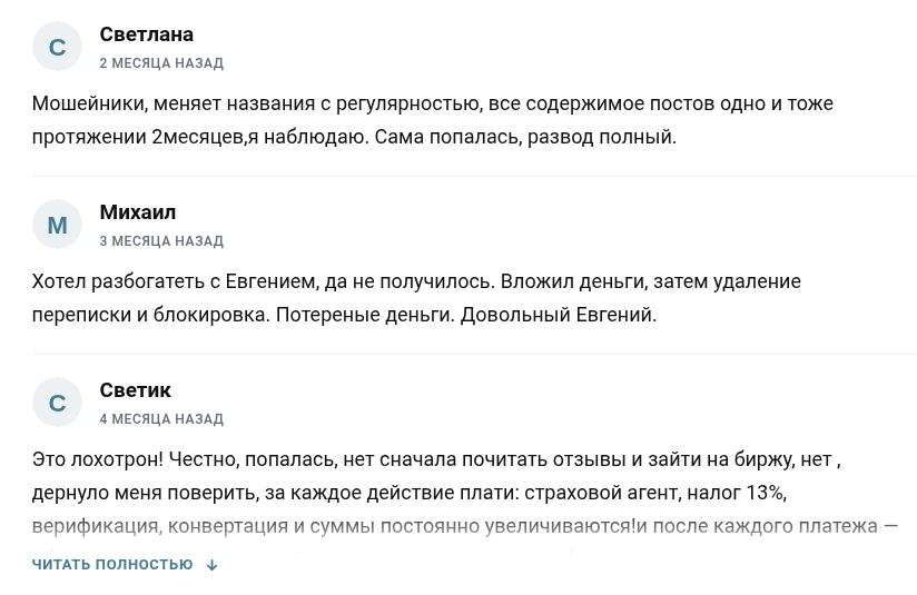 Положительных откликов за пределами самого канала нет. На площадках, где собираются реальные пользователи, отзывы одинаковые, все негативные — обещанных выплат никто не получал, ответов на вопросы нет, контакт с админом обрывается после получения средств. Независимых подтверждений хоть каких-то выплат не найдено.