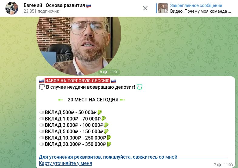 Евгений Основа Развития отзывы : разоблачение скам — канала инвестора Evgenij Osnova Razvitiya