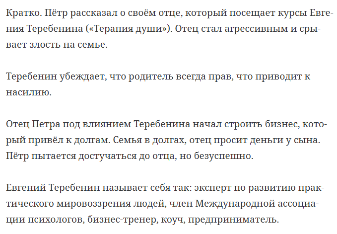 Евгений Теребенин Терапия Души отзывы : разоблачение курсов школы Теребенин Евгений Валентинович
