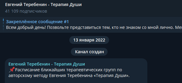 Сколько на самом деле психолог Евгений Теребенин работает по всем указанным им направлениям – сказать сложно. Опыт в медиа же у него относительно небольшой: тг-канал коуч запустил в 2022-м году.
