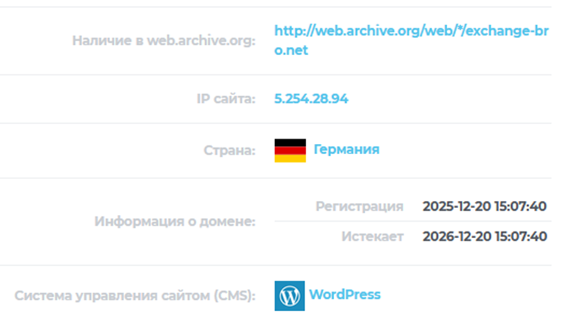 К минусам надо отнести и то, что платформа часто меняет адреса. До 2025 это произошло минимум два раза, о чем администрация предупреждает на форуме Bits Media. Все данные клиентов были перенесены, но большого удобства в работе это не прибавляет. Сайт Exchange bro net был зарегистрирован 20 декабря 2025 года через Германию, по состоянию на конец апреля 2026 он указан в качестве единственного.