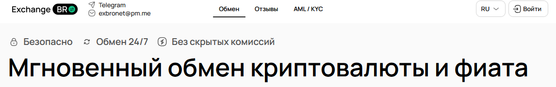 Exchange Bro – онлайн обменник, работающий в автоматическом режиме и предлагающий удобные условия для совершения операций с криптовалютой. Потенциальным клиентам предлагает быстрые обмены по хорошим курсам. Но отзывы о сервисе неоднозначные, некоторые клиенты говорят о задержках и проблемах с получением средств.