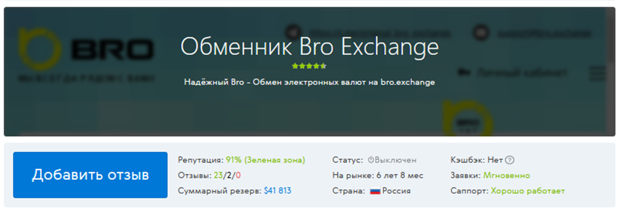 К преимущества Exchange Bro Net также надо отнести присутствие сервиса на площадках крупных агрегаторов, включая мониторинг BestChange, наличие веток на специализированных форумах.