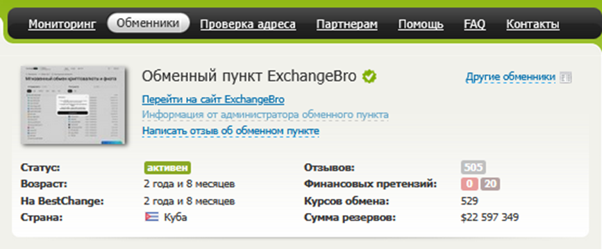 Оценка деятельности обменника Эксченж Бро Нет явных признаков мошенничества не показывает. Платформа работает более шести лет, свои обязательства перед клиентами выполняет. Но есть ряд минусов, которые нужно обязательно учитывать при выборе обменника: