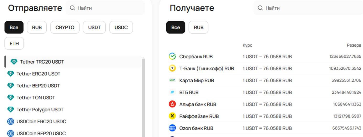 Для совершения обмена можно обратиться к техподдержке за помощью, воспользоваться ботом ТГ ExBro bot или заполнить заявку на сайте. В последнем случае надо предварительно пройти регистрацию, после чего ознакомиться с рабочими направлениями и актуальными резервами валют. Все они отображаются на главной странице.