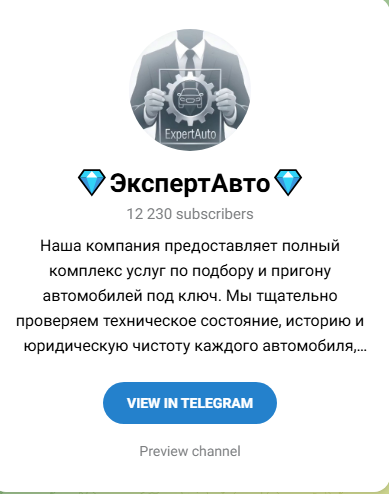 ЭкспертАвто – Телеграм-канал, отзывы о котором опубликованы негативные. Проект позиционируется как сервис по пригону автомобилей из Европы «под ключ». Владельцы канала размещают объявления о машинах из Германии, Нидерландов и Франции, обещают полный цикл оформления и доставку в Россию. При этом структура проекта, контакты и порядок расчетов вызывают серьезные сомнения.