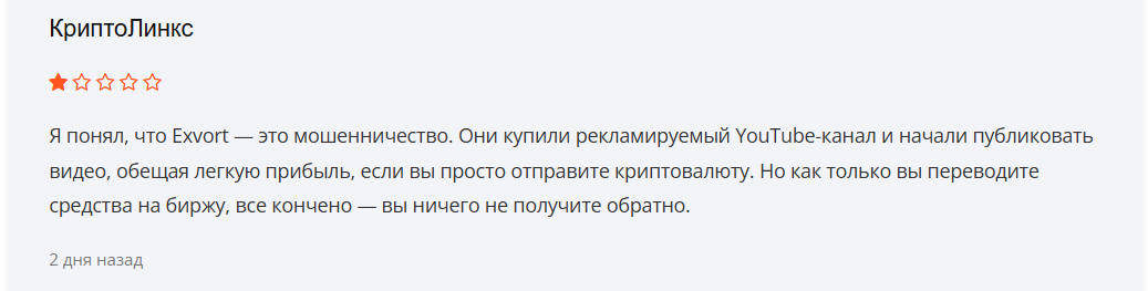 • Отзывы о бирже Exvort com только отрицательные, а значит люди не доверяют в надежность сервиса.