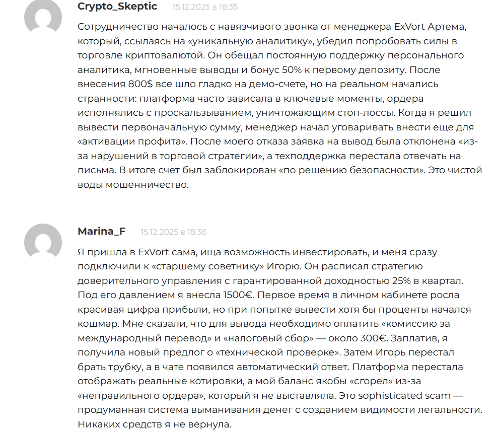 Отзывы о бирже Exvort com от реальных клиентов в Сети