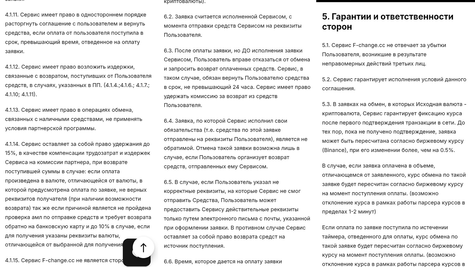 Ф Чендж сс не отвечает за убытки клиентов и проблемы. Плюс ко всему, платформа не гарантирует выполнения условий соглашения.