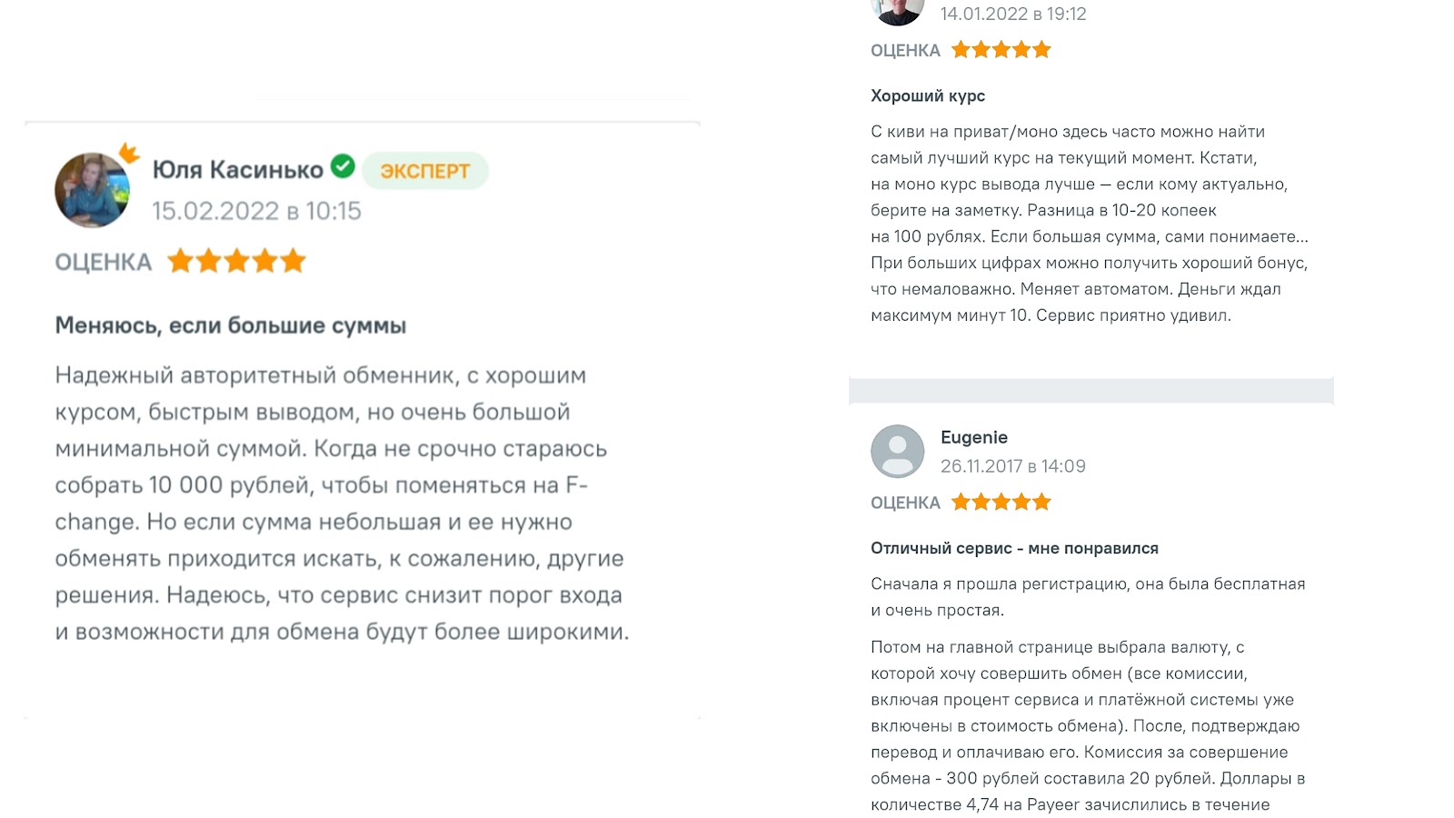 В сети есть положительные отзывы, в которых благодарят обменник F Change за быстрые транзакции и приемлемые комиссии.