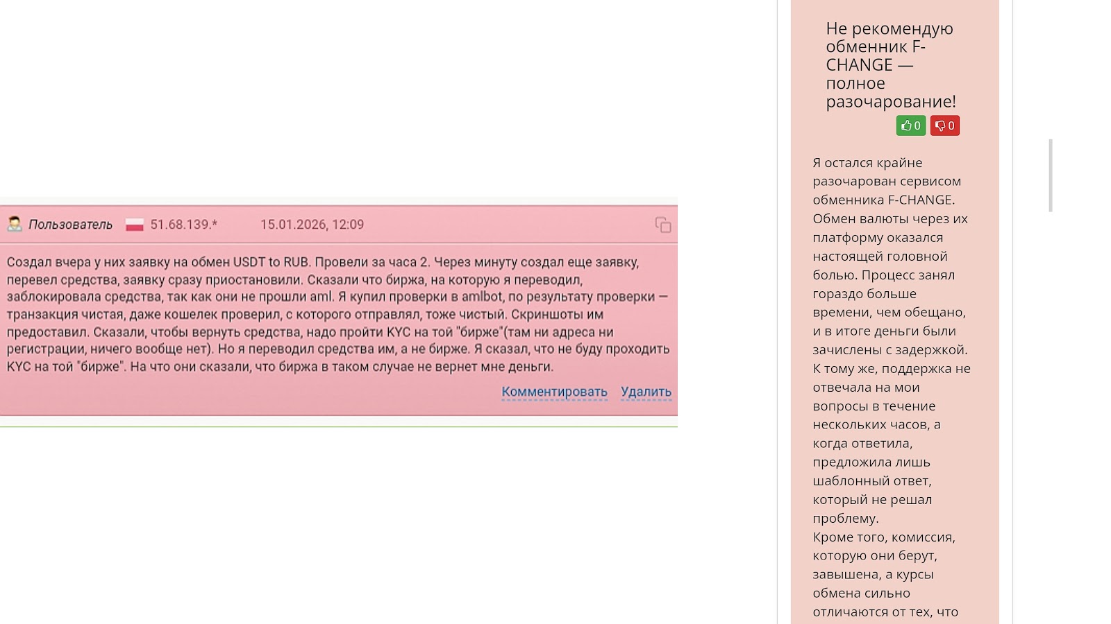 Кроме того, некоторым пользователям заблокировали обмены с требованиями проходить проверки. Оставить свой отзыв об обменнике F Change можно под обзором.