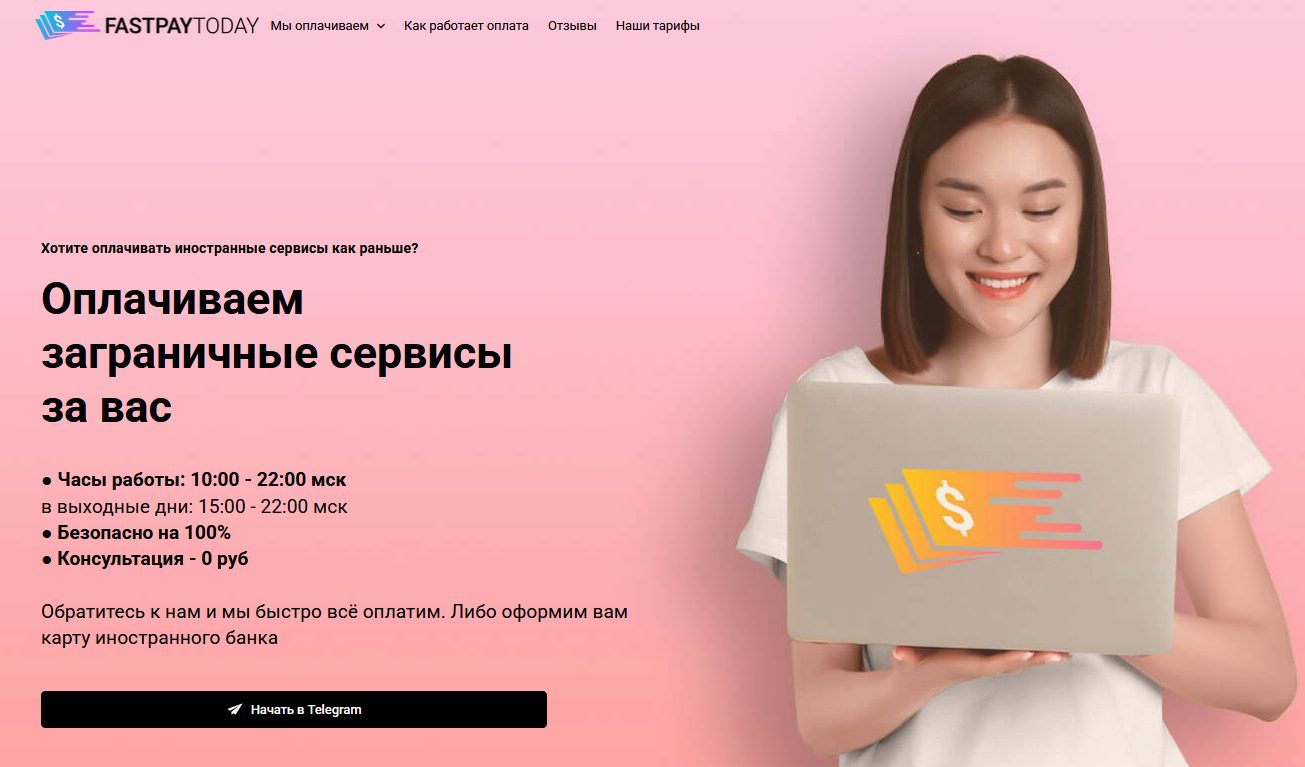 Платежная система FastPay Today предлагает быструю и безопасную оплату иностранных сервисов. Потенциальным клиентам доступны разные виды услуг, включая покупку и продление подписки, заказ платежных карт зарубежных банков, переводы средств. Компания сотрудничает не только с физическими, но и с юридическими лицами, предоставляет отчетность.
