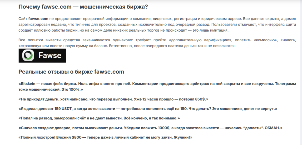 Отзывы о бирже Fawse: обзор и анализ деятельности торговой платформы «Фавсе»