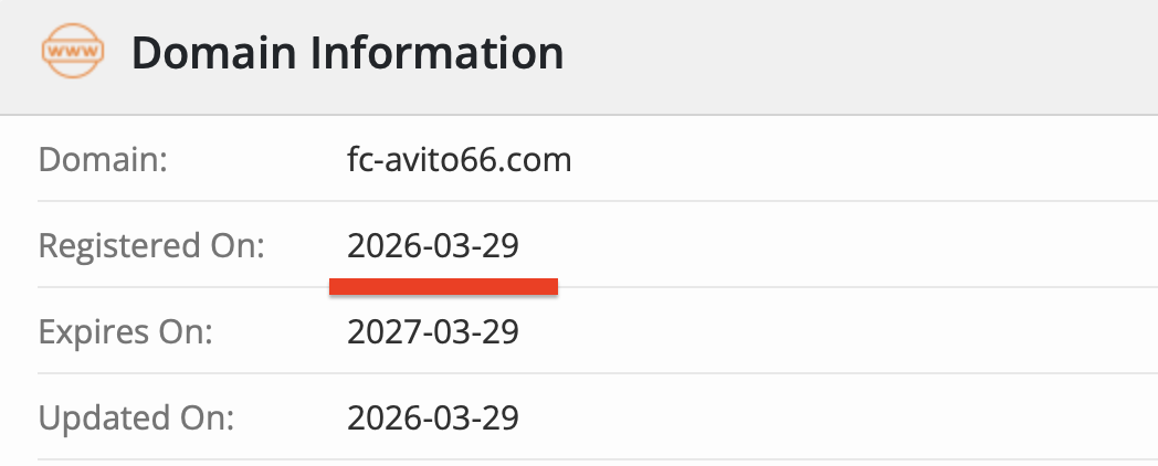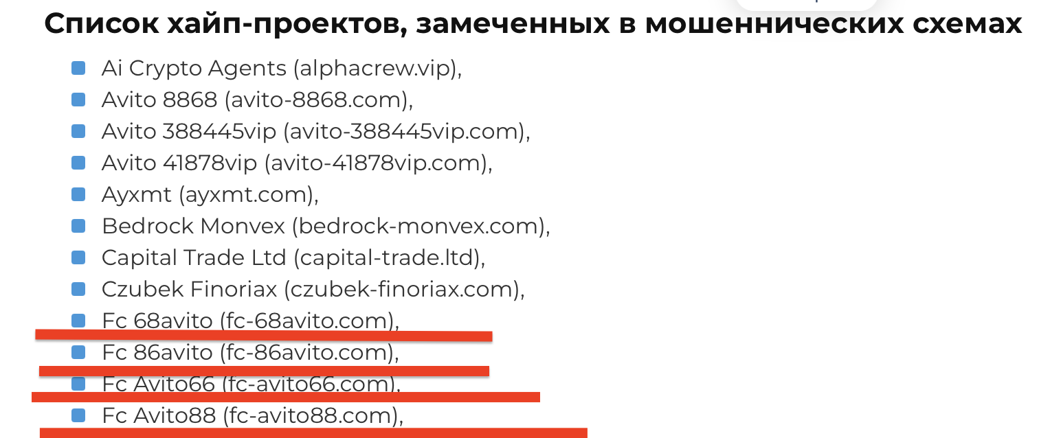 Первый признак скама — дата запуска сайта Fc Avito 66. Доменное имя зарегистрировано буквально на днях, контакты отсутствуют полностью, юридическая информация не раскрыта. На независимых мониторингах проект уже отмечен как подтвержденный мошенник, а в списках сомнительных сайтов он стоит в одной строке с другими похожими клонами.