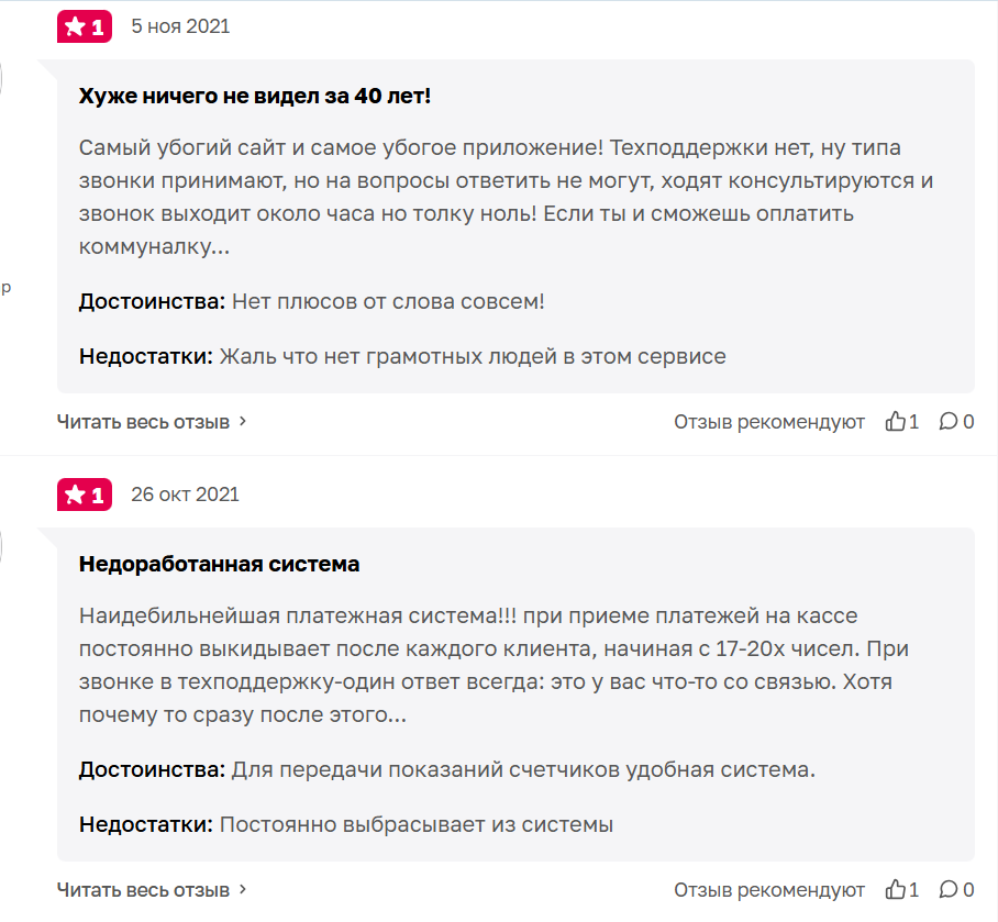 Как вынужденному инструменту для оплаты коммунальных услуг сервису можно доверять, особенно если альтернатив нет. Но рассчитывать на гибкость, быстрые решения проблем и ориентир на клиента здесь не стоит, а потому рекомендовать сотрудничество мы не можем.
