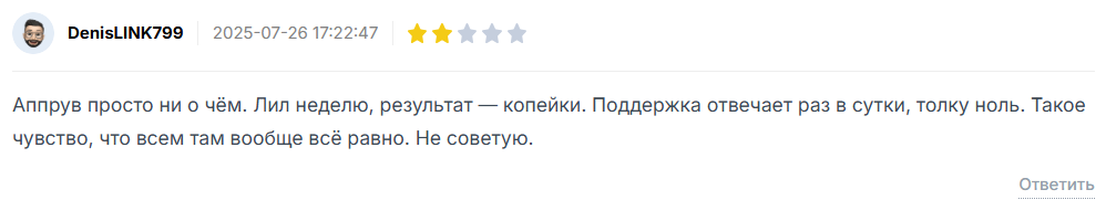Подобная противоречивая репутация может указывать либо на единичные случаи негативного опыта заработка, либо на фейковый характер положительных отзывов, которые компания могла заказать у фрилансеров за деньги. В любом случае финансовые риски актуальны.