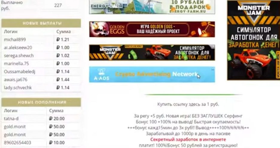 По сохранившимся данным, помимо обычных переходов на сайты, пользователи могли зарабатывать на просмотре рекламы и реферальной системе, но данные о вознаграждениях за эти активности не сохранились. Вывод был возможен на кошелек Payeer: с помощью него проходила и регистрация.