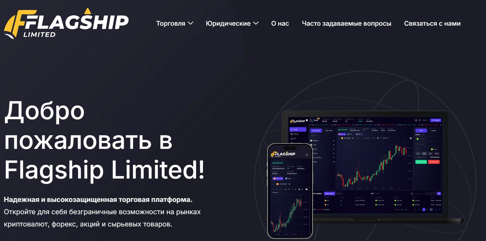 Flagship Limited – торговая платформа для трейдеров. Обещает доступ к разным активам, передовые инструменты, безопасность торговли. Но имеет признаки скама. Подробнее рассмотрим ее далее.