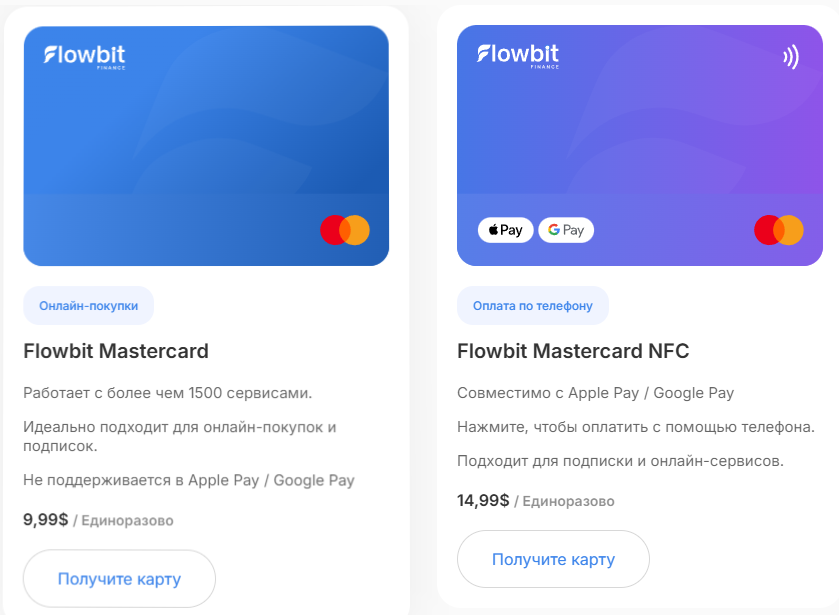 Карты и тарифы «Фловбит Финанс»