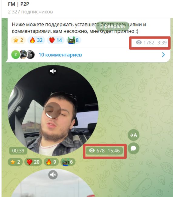 Комментарии на канале FM P2P открыты, но оставляет их небольшое количество пользователей. Сам блогер охотно вступает в диалог со своими подписчиками. Реакции к постам аудитории также доступны. За все время функционирования FarmanP2P трейдер опубликовал 425 фотографий, 52 видеоролика, 315 голосовых сообщений.